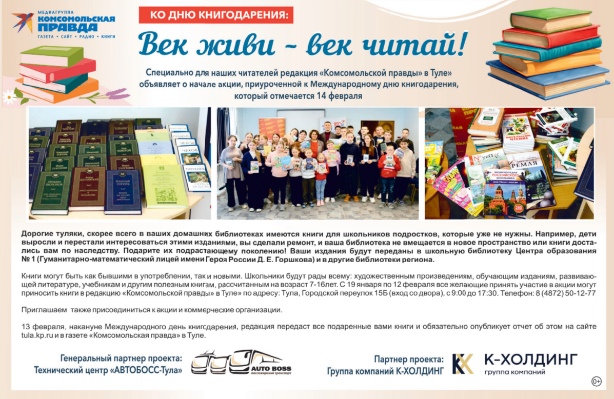 Все желающие могут принести книги в редакцию «Комсомольской правды» в Туле по адресу: